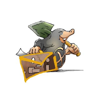 ... ein kleiner Maulwurf mit grauem Fell und grünem Klappspaten.
